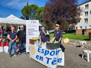Notre région est réputée pour sa production d’olives. Sur les marchés, nous avons tenu un stand pour promouvoir l’utilisation de pièges à mouches de l’olive et collecter des fonds pour la FRC, dans le cadre d’une action du Rotary appelée « Espoir en Tête ».