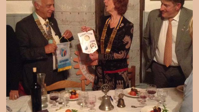 Le gouverneur a remis le fanion de l’année 2017.2018 du RI à Carol et Carol celui du notre club.