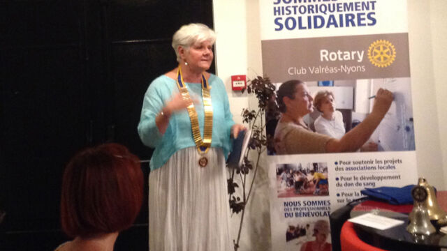 Ce fut l’occasion à Carol Stephens de faire un tour de cette année de présidence et d’adresser de vifs remerciements à son Comité et particulièrement à Philippe de Guillebon. Carol Stephens transmet ensuite « le collier » à Marie-Line Triquet sous les applaudissements de l’assemblée.