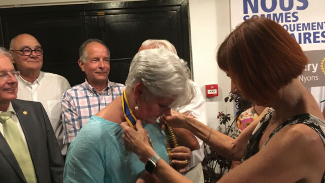 Ce fut l’occasion à Carol Stephens de faire un tour de cette année de présidence et d’adresser de vifs remerciements à son Comité et particulièrement à Philippe de Guillebon. Carol Stephens transmet ensuite « le collier » à Marie-Line Triquet sous les applaudissements de l’assemblée.