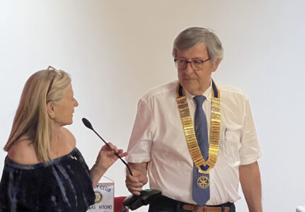 C’était toute une fête, Passation 2023, au Château de Simiane à Valréas… la remise du maillet du Président François au Président Damien. François a été président de notre club pendant deux ans remarquables, après Présidente Sarah et les défis des restrictions Covid.