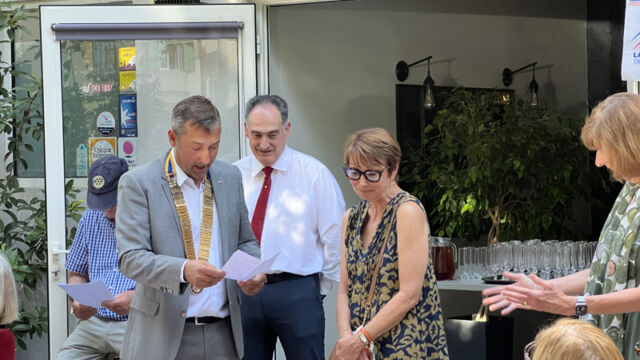 Veuillez vous joindre à moi pour souhaiter la bienvenue à Catherine au Rotary.»