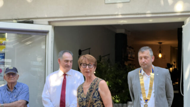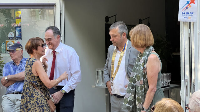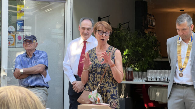 Veuillez vous joindre à moi pour souhaiter la bienvenue à Catherine au Rotary.»