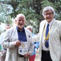 L’un des privilèges d’être un Rotarien est d’être invité à visiter l’un des 46.000+ clubs à travers le monde. Lors de la cérémonie de passation, c’est ce qu’a fait le distingué Dr Martin Exner MD, membre du club Rotarien de Bonn-Kreuzberg en Allemagne. Dr. Exner vient régulièrement en France, vivant à Rousset-les-Vignes. On lui a remis le fanion du club et il a fait part aux membres de sa vaste expérience, dont celle d’être l’un des sept membres du Comité consultatif Corona de l’ancienne chancelière allemande Angela Merkel. Martin a dit au groupe, « Je suis d’autant plus heureux d’avoir trouvé aujourd’hui le contact avec votre club et votre invitation, et je me permets de vous transmettre les meilleures salutations de notre club de Bonn, Bonn Kreuzberg. »